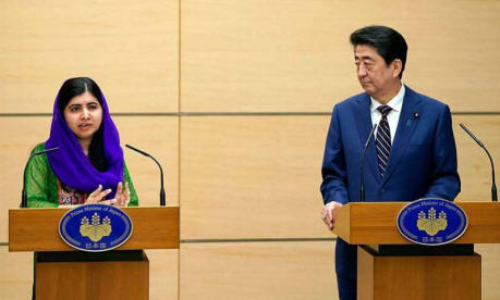 Speaking alongside Shinzo Abe, the celebrated education activist told